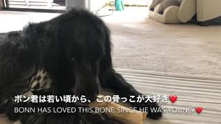 ボン君は若い頃から骨っこが大好きで、暇さえあれば骨っこをカミカミしていました。